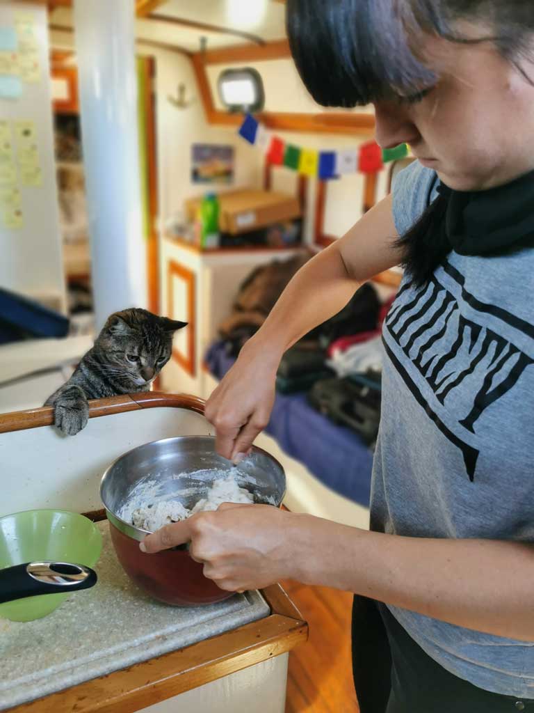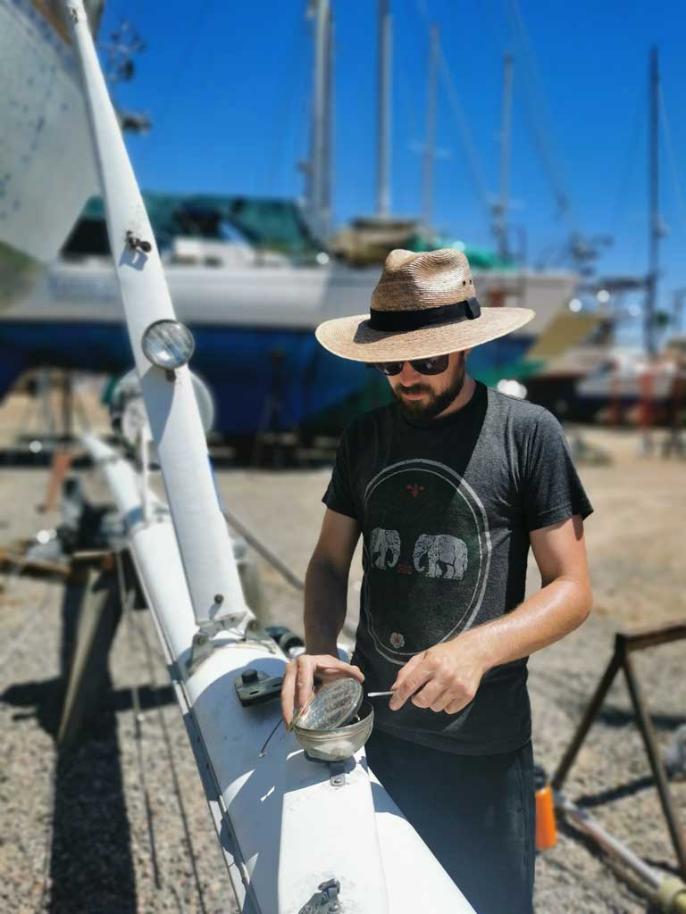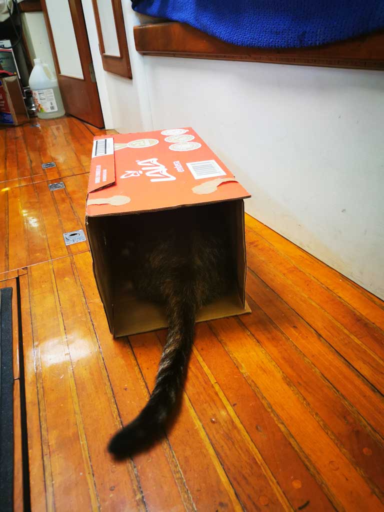 In den letzten Wochen wurde mein Schiff wieder ein wenig mehr auseinandergenommen und der Mast entfernt. Seit Tagen hämmern und kratzen Patricia und David daran herum. Immer wieder ist ein Fluchen zu hören. Ein paar Schrauben und Bolzen lassen sich anscheinend nicht lösen. Zum Glück muss ich nur zuschauen. Als Schiffskatze weiss ich natürlich, wie man widerspenstige Teile entfernen kann. WD40 und PB Blaster. Die Wundermittel für alles.