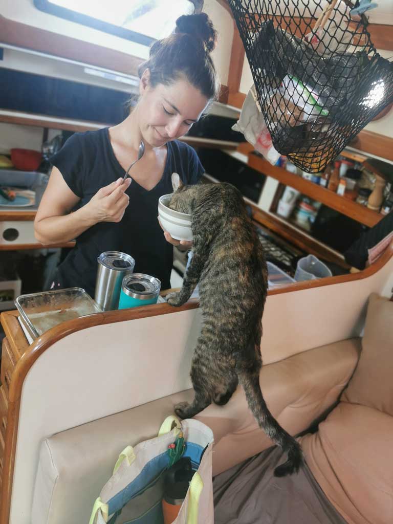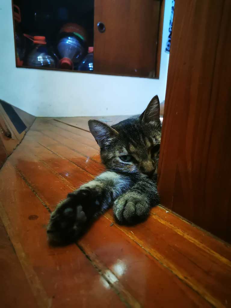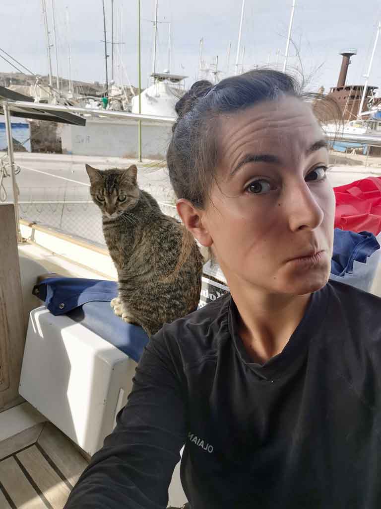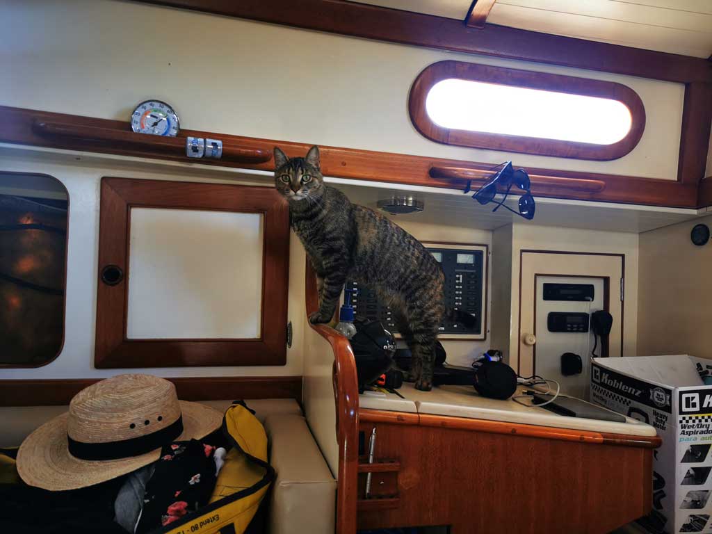 Jetzt bin ich an der Reihe. Nachdem ihr immer mit Pati und Davids Blogbeiträgen Vorlieb nehmen musstet, melde ich mich auch mal zu Wort. Milagros ist ja schliesslich auch mein Schiff. Hier kriege ich zwar nur Wasser und nichts zu fressen, aber die beiden Klimaanlagen machen das Katzenleben noch angenehmer, als es auch so schon ist. Ich kann rumhängen und kratzen und beissen, wenn die beiden Besitzer meines Schiffs mir nicht gehorchen. Ich bin Dulce, "süss" auf Spanisch, so bin ich eben. Und ich bin die Platzchefin.