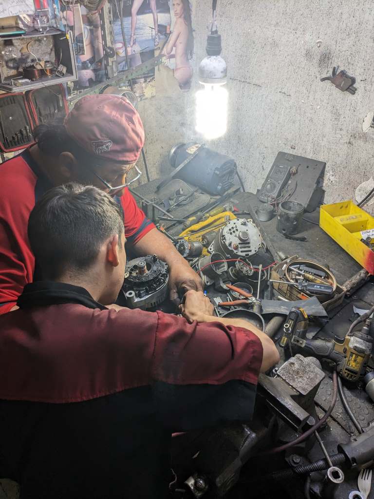 Nach den üblichen Umwegen waren wir ein paar Tage später stolze Besitzer eines neuen, über 4-mal stärkeren und preiswerten Alternators. Er brauchte aber ein paar Modifikationen an seiner Verkabelung, um ihn vom "Auto‐" auf "Schiffsmodus" umzubauen – von einem internen auf einen externen Regulator um genau zu sein. Einfacher gesagt als getan, denn die allermeisten mexikanischen Werkstätten kennen eigentlich nur den "Automodus".