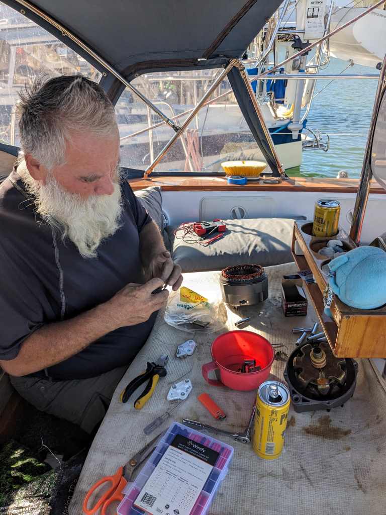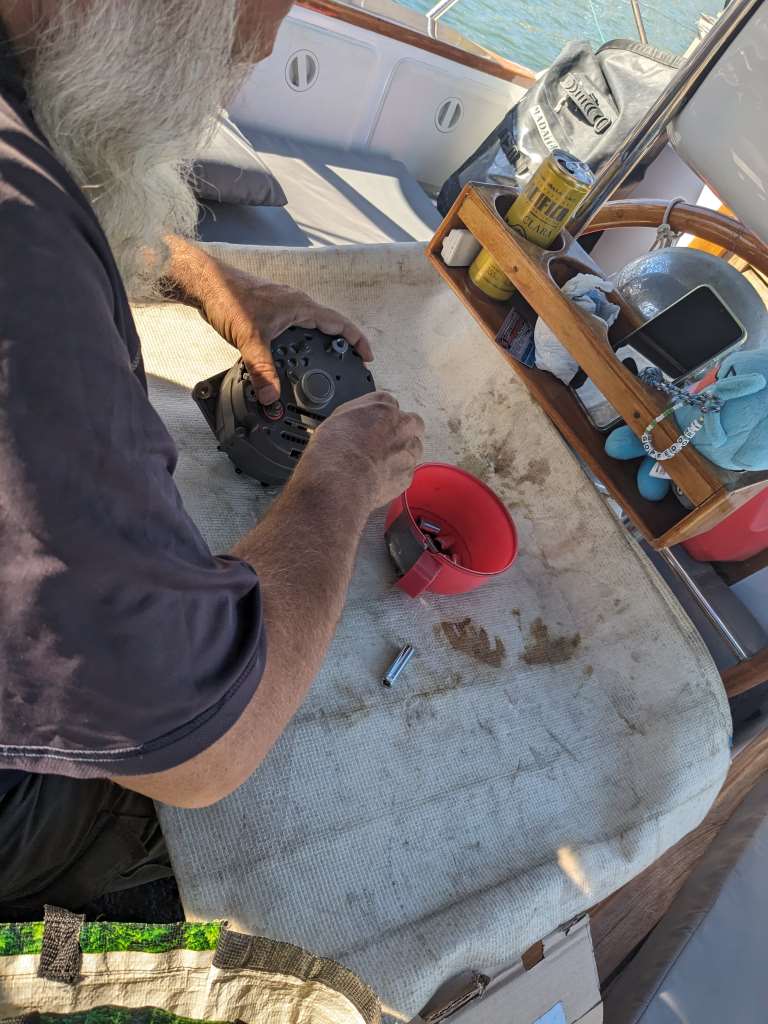 Lucas stand uns wie immer stundenlang und mit einer Engelsgeduld mit Rat und Tat zur Seite. Im Gegenzug fütterten wir ihn mit allem, was die Kombüse hergab. Und wer hätte das gedacht? Wir brauchten einen neuen, grösseren Alternator. Unser derzeitiger Alternator war zu klein fürs neue System. Ich erspare euch mehr Details, genug eines erneuten Deep Dives in Schifftechnik.