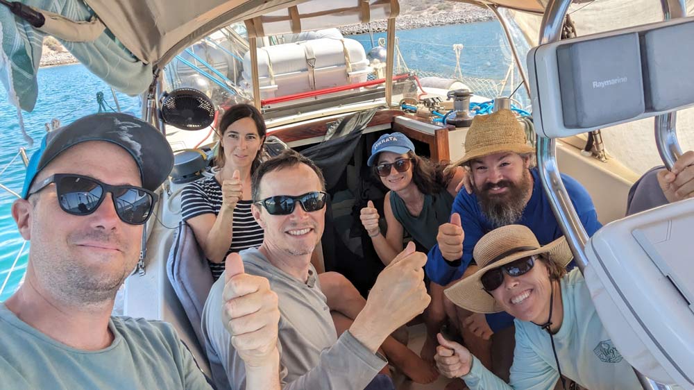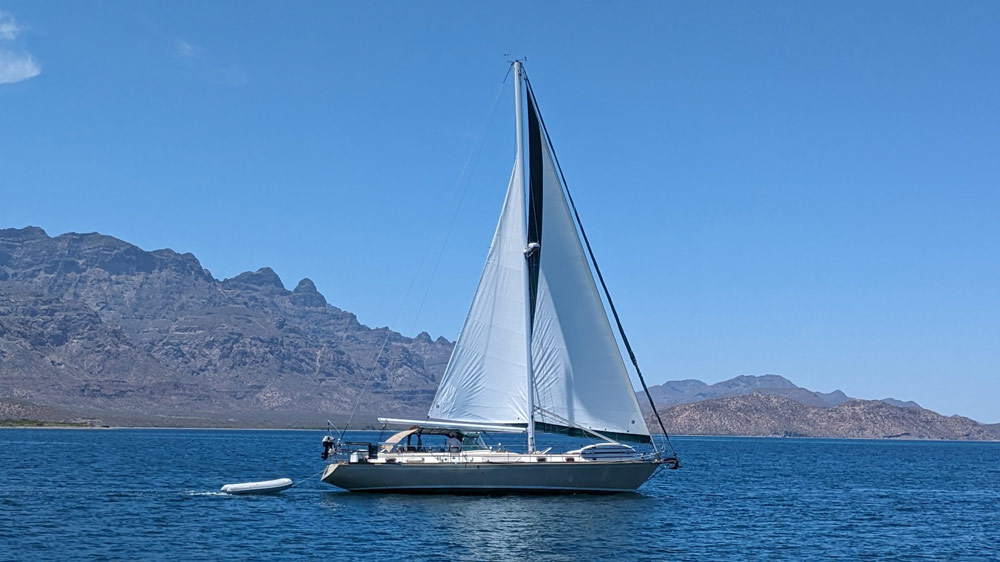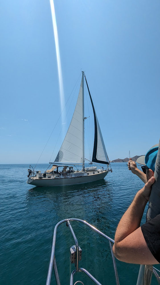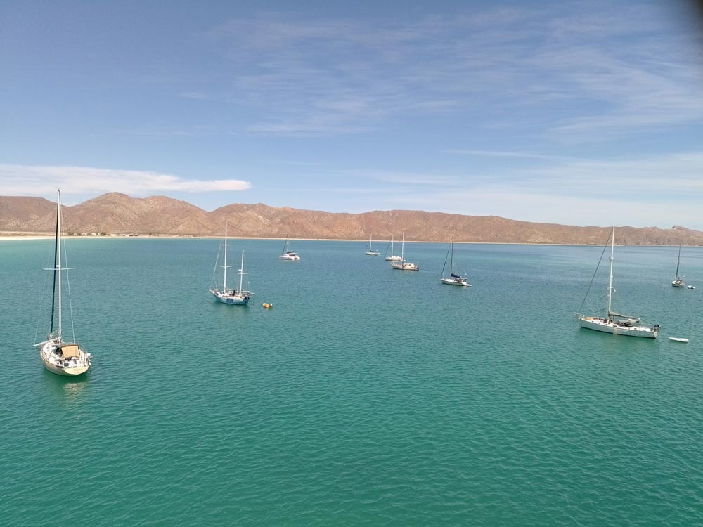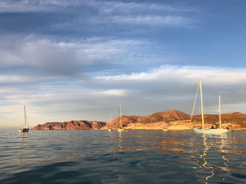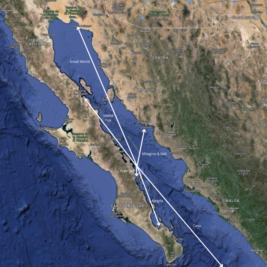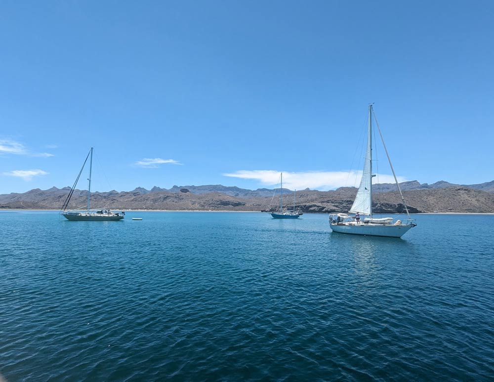 Pati und ich hatten erst kürzlich eine kleine Umrundung der Insel hinter uns gebracht, aber in der Sea of Cortez gibt es praktisch unbegrenzte Ankermöglichkeiten, und wir hatten bei weitem nicht an allen schönen Orten Halt gemacht. Als sich ein Wetterfenster auftat, das Segeln versprach, machten wir uns alle nach und nach auf den Weg. Cavu und Alegria düsten als Erste los, dicht gefolgt von Milagros. Crack und Crystal auf Small World ließen es gemächlich angehen und blieben noch zurück. Elana und Travis auf Island Fox verließen uns für ein paar Tage, um Freunde weiter im Süden zu treffen, würden aber später wieder zu uns stossen.