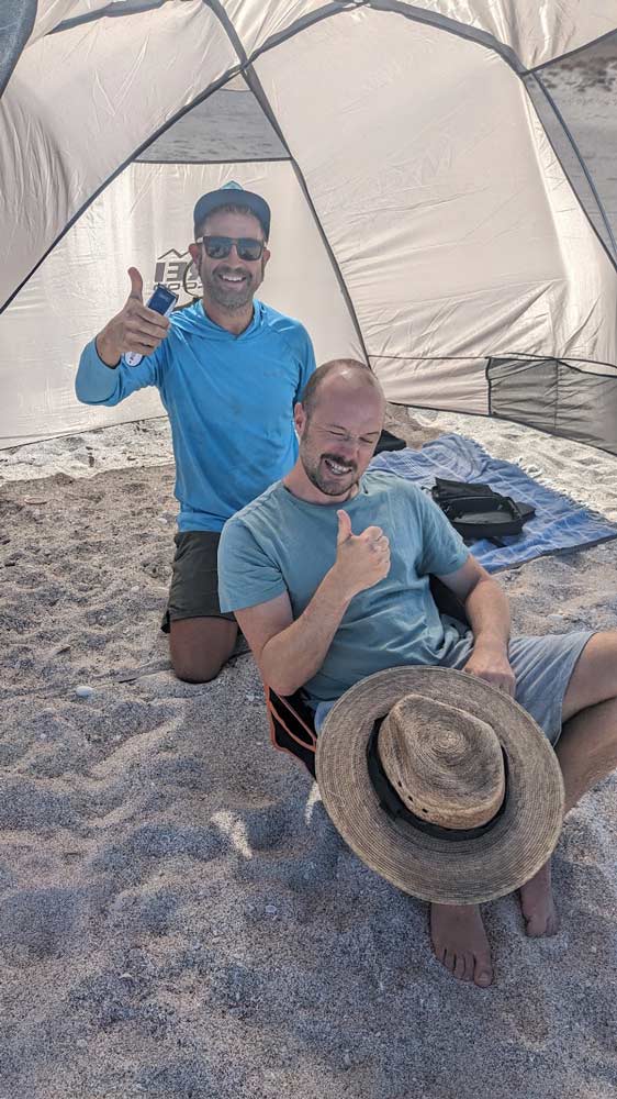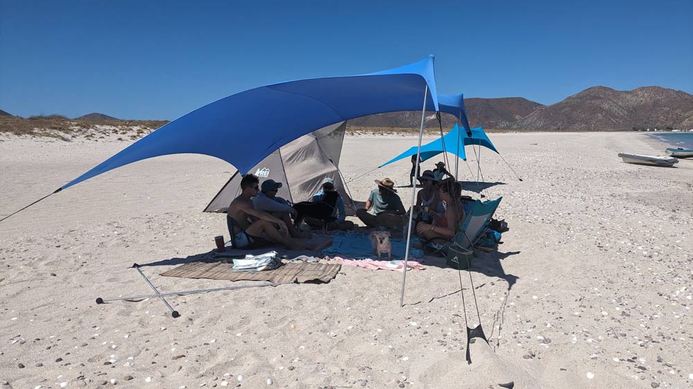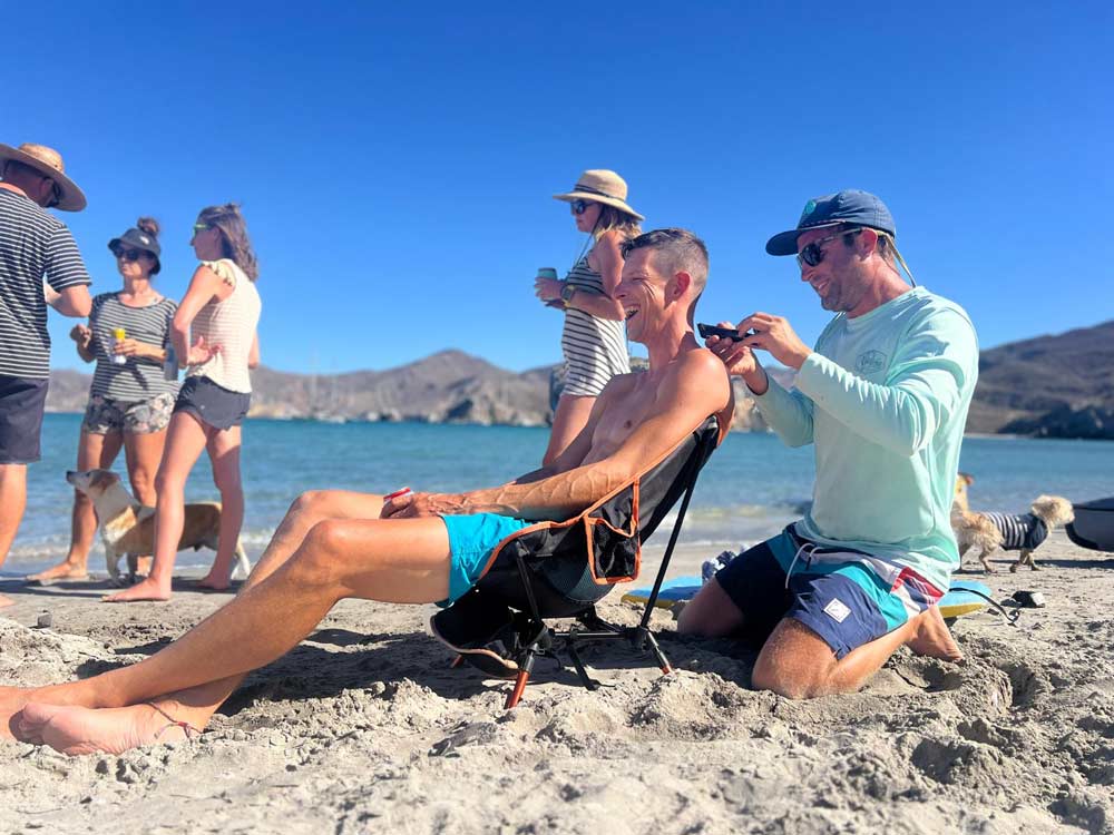 Später war bei der ganzen Gruppe wieder mal Haareschneiden angesagt. Und was kommt da passender als ein guter Freund, der das Frisieren als sein Hobby entdeckt hat? „Mike’s Sea of Cortez Barbershop“ schlug also am Strand sein Zelt auf und wir wurden schnurstracks alle wieder auf Vordermann gebracht. Auch ein Kind von einem anderen Schiff bekam einen Haarschnitt; einen Undercut, um genau zu sein. Als kurz darauf deren Mutter mit dem Dinghy in unsere Richtung unterwegs war, erwarteten wir schon einen Zusammenschiss. Das Gegenteil war der Fall – Mike musste auch ihre Haare schneiden.