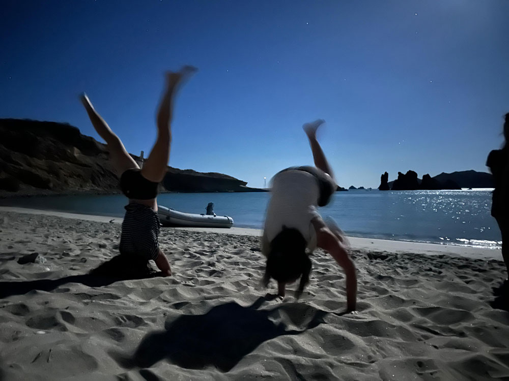 Also mussten wir uns auf einen letzten Stopp einigen. Nach einem Einkaufsbummel in Loreto und einer Nacht bei der guten alten Isla Coronados landeten wir wo? Ihr dürft dreimal raten. In San Juanico. Zum dritten Mal diese Saison. Weit waren wir nicht gekommen dieses Jahr. Trotzdem waren wir viel unterwegs. Macht ja auch nichts, denn San Juanico ist super. Und noch viel superer war San Juanico mit all unseren Freunden im Schlepptau. Die Aktivitäten reichten von Speerfischen und Schnorcheln, Floating mit Bierchen, Spaziergängen am Strand über Malen mit Wasserfarben und einer weiteren tollen Geburtstagsparty für Cavu Marla bis in die späten Stunden der Nacht hinein. So muss das sein!