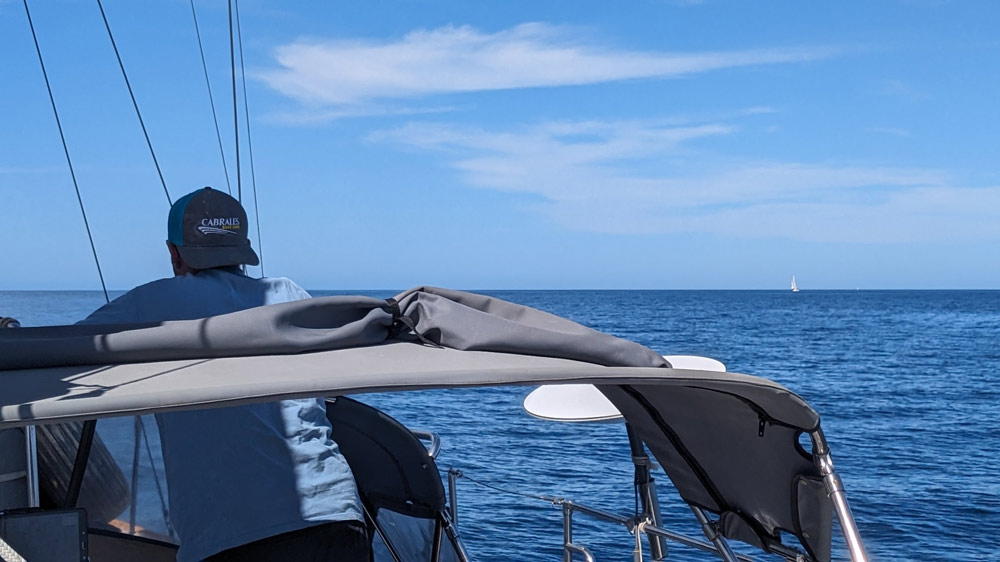Wir starteten sportlich mit vollen Segeln und schafften es tatsächlich, Alegria einzuholen, als sie in einem Windloch sassen. Warum genau wir schneller waren als sie? Keine Ahnung. Wir waren es einfach. Ein angefressener Alegria-Mike meldete sich mit ebendieser Frage per Funk, worauf Pati natürlich noch ein wenig Salz in die Wunden reiben musste. „Wir haben eine Kelly Peterson 44 und Skills“, antwortete sie. He he he.
