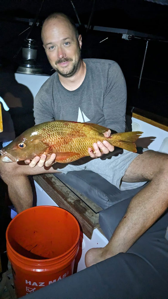 Auch hatte ich mal wieder Anglerglück. Eines Abends cruiste ich mit 1-2 Bierchen im Dinghy dem Ufer entlang und zog einen Köder hinter dem Schiff her. Und wie immer, just wenn ich schon dachte, dass ich eh nichts fange und am Rumträumen war, riss es an der Rute und ich fing im Schnellzugtempo zwei tolle Snapper. Diese wurden tags darauf zu Sushi verarbeitet und auf Milagros genüsslich verzehrt.